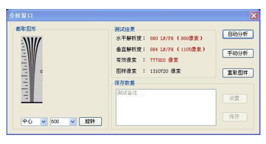 軟件輔助分析,可以得出解析度,有效像素總數(shù)和和光學有效像素;如下圖: