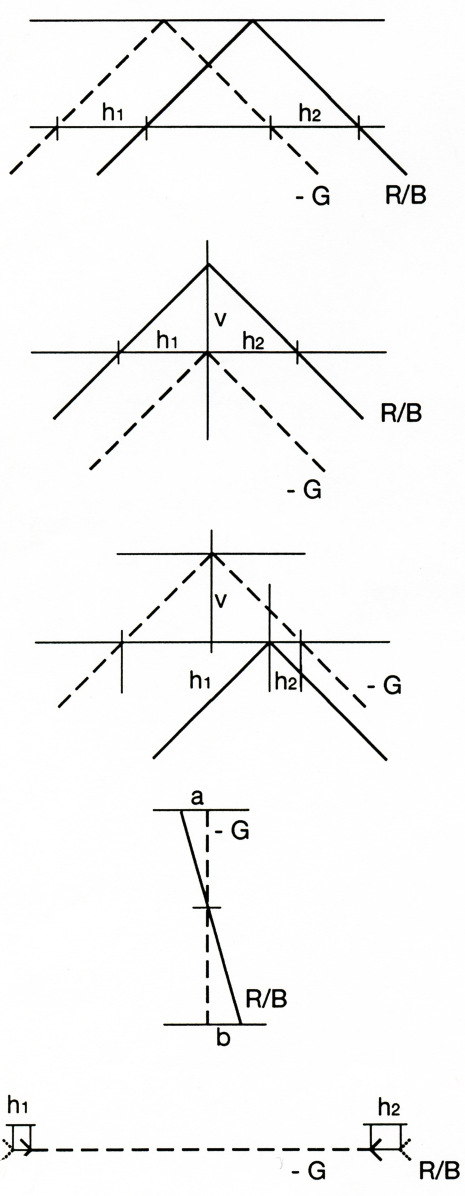 兩個(gè)延遲部分開關(guān)測量之前都在零位位置。各自調(diào)整R、B到G上面最小化a和b的距離(圖1)??梢园l(fā)現(xiàn)水平和垂直誤差: