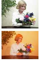 We generally list this image first in our picture index pages, both because it's fairly representative of a "typical" subject, and because it provides a good, quick check of many of the camera characteristics we discussed above. First of all, this shot is a very harsh test of a camera's ability to handle tonal extremes, from the very strong highlights in the model's shirt, to the shadows among and underneath the flowers and their foliage. Look to see if there's visible detail in both highlights and shadows: If you find it, the camera has a broad tonal range.