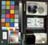 Actually, other than far-field focus capability, this single test target can tell you virtually everything you need to know to evaluate a digital camera! (It just doesn't represent "typical" subjects very well, so it's difficult for most people to translate what they're seeing back to performance in real-world situations. I (Dave Etchells) originally developed this target for testing high-end studio cameras, to quickly assess color accuracy, tonal reproduction, highlight and shadow detail, sensor performance to extreme light overloads, and resolution. Originally, it was a white box with the various elements fastened to it. When I began using it to test low-end digital cameras though, the bright white background of the box tended to fool the cameras autoexposure systems, resulting in dark, underexposed pictures. To correct for this, I painted most exposed parts of the box black, which brought the overall reflectance down to a pretty close approximation of the 18% gray standard used to calibrate most exposure systems.